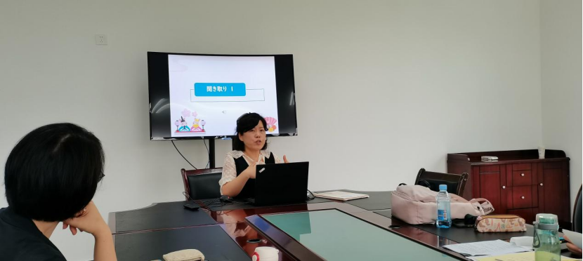 为更好地开展教学“传-帮-带”,日语系金香梅老师首先分享了日语专业课程“日语视听说”课程建设和教学设计,为全体与会老师做了一堂示范课堂。金老师精心打磨的教案课件、认真优选的教学素材、生动活泼的授课风格、以学习者为中心、注重语言输出的教学活动设计等,让大家深受启发。尤其对于刚加入日语专业教师队伍的青年教师起到了良好的示范作用。示范课后的交流时间,金老师还进一步向青年教师分享了教学设计中的经验与体会。