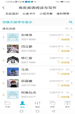 公外研究生专业交流英语课程教学中,汪兴富老师利用优秀的UMU教学平台,将Market Leader中高级教材、优秀的TED演讲、纪录片America: the Story of Us、以及COCA语料库资源4大主要内容整合成200多个学习小节或资源微课,以问卷、文档、视频、拍照、讨论、图文、作业、考试等多种类型编制出一个系统性的课程。上课采取间插拓展方式训练学生的语言能力,全面培养懂Communication,Cultures,Collaboration,Creativity,和Critical Thinking的5C能力的新时代研究生。并充分利用UMU平台积分规则调动学生学习积极性,向优秀同学学习。该课程的安排计划明确,课时的任务清晰明了,考核方式多元化,充分兼顾学生平时学习情况与最终考核成绩。