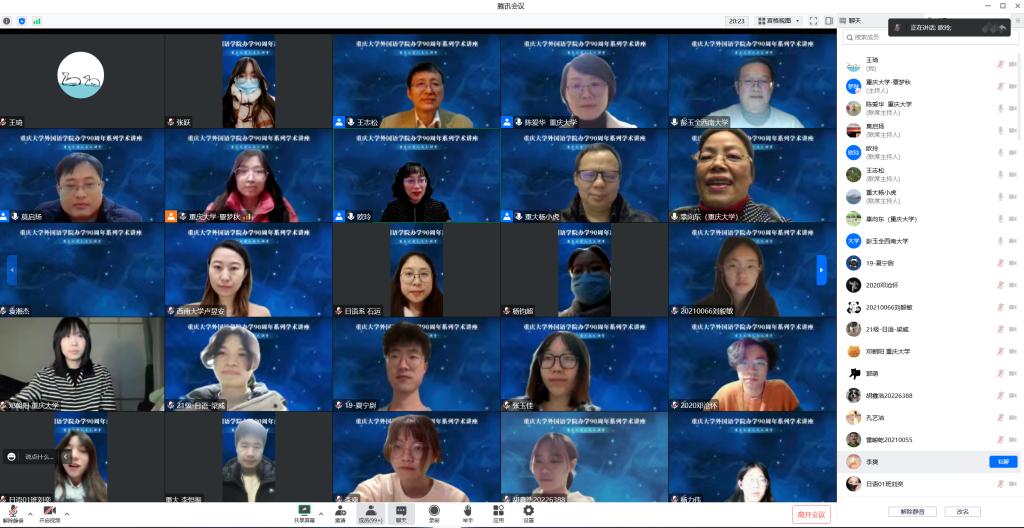 党委书记欧玲、院长莫启扬、副院长杨小虎,中国日语教学研究会重庆分会彭玉全会长,来自全国各高校日语专业的150余位师生参与本次讲座。