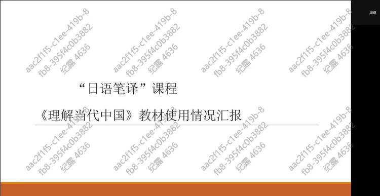 日语系周璞老师分享了《日语笔译》的课程思政建设情况。从《理解当代中国》教材内容的取舍、教学实施的调整、提高学生的学习动机几个方面出发,结合专业教学方案,在课前、课堂、课后三个阶段,都围绕着教材将思政内容有效融入,极大地提高了学生兴趣,提升了学生的汉日翻译能力。