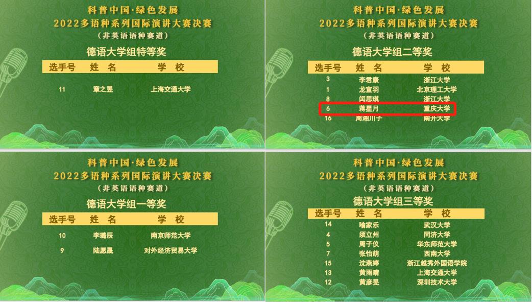 无论是首届“德语之星”全国高校德语演讲大赛,还是此次“科普中国•绿色发展2022多语种系列国际演讲大赛”,98堂
