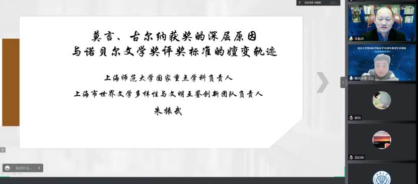 讲座伊始,朱振武教授以诺贝尔文学奖的由来、授奖宗旨及获奖作家的国籍语言分布特征为切入点,归纳出该奖项评奖标准嬗变的六个发展阶段,分析引发变化的历史必然性与文化启示。然后,朱教授从非洲作家和中国作家获得诺贝尔文学奖的具体文学事件出发,探讨全球语境下“非主流”文学之于世界文学文化多样性发展和实现文明互鉴所具有的独特价值。