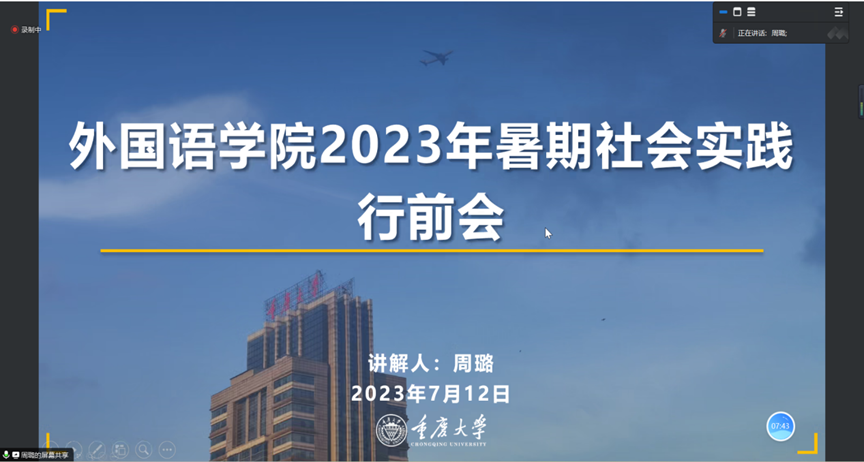 团委学生会于线上腾讯会议举行了2023年暑期社会实践行前会。培训内容主要分为三个部分,分别由98堂
