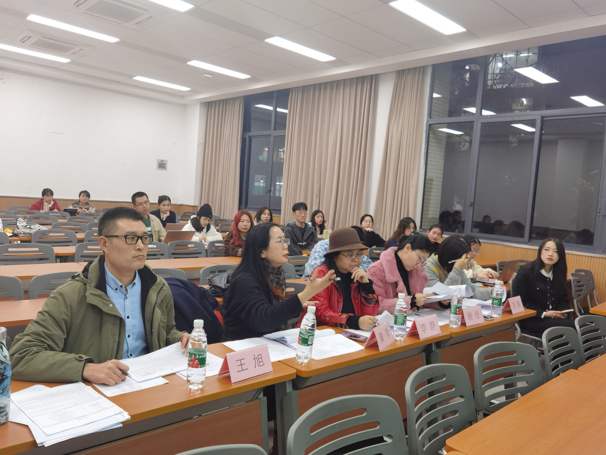 教师李静、谢佳、刘琳、王旭担任本次活动的评委。本次活动由张小雅同学主持,来自教育学、外国语言文学、翻译、汉语国际教育专业的9位研究生参加了本次比赛。
