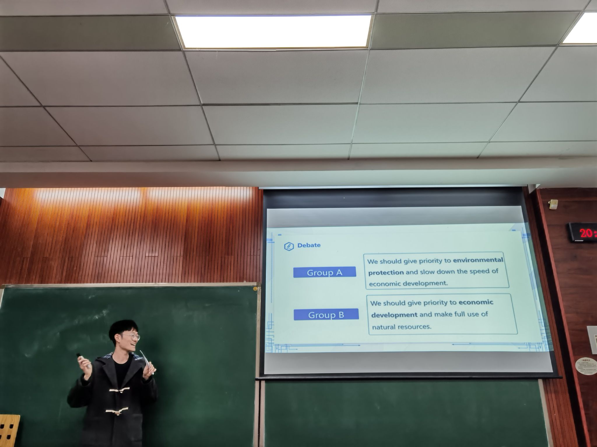 李鸿宇同学在说课过程中详细展示了教学设计,通过丰富的肢体动作和“jigsaw”的设计活跃了课堂气氛;闫超双同学充分运用视频、教具等工具,从自身经历引入课堂,向在场教师同学展示了英语教学的多样性;张新伟同学将思政元素充分融入课堂,贯穿了“全面推进乡村振兴,加快建设农业强国”的思想。各位选手在本次比赛中展现了出色的表达和教学能力,根据各自教案展开的独特教学设计,使整个比赛精彩纷呈。