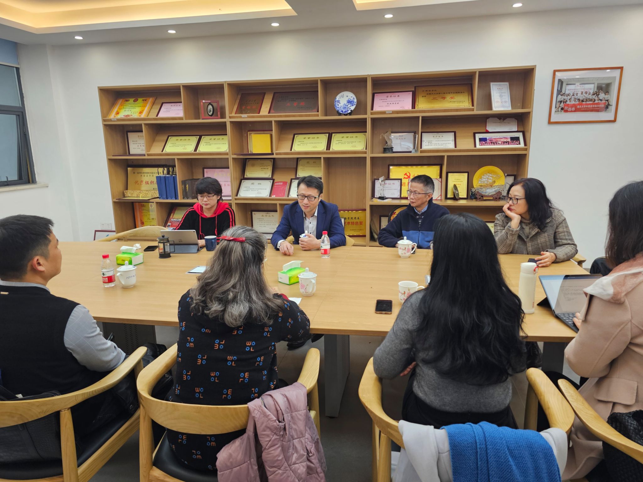 副院长李小辉主持,余渭深教授、黄萍教授、辜向东教授以及大学外语教育中心冯巨澜副主任,课程负责人杨郁梅老师参加了本次调研活动。