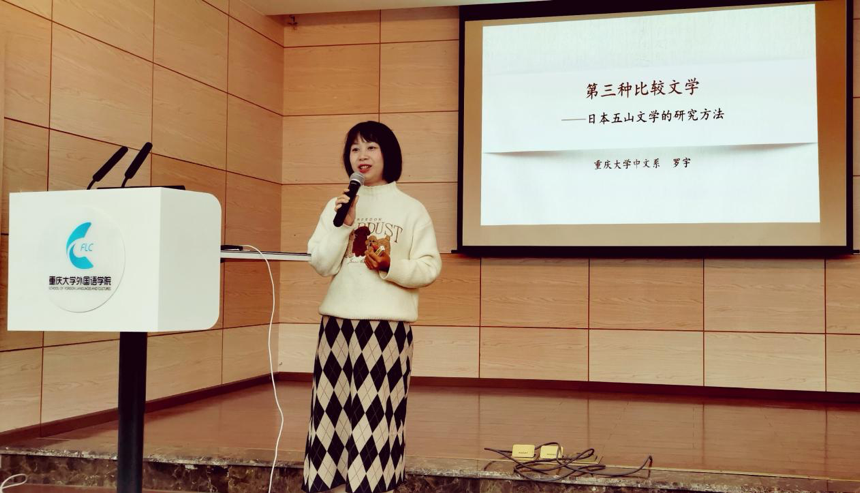 人文社会科学高等研究院罗宇老师,进行了题为“第三种比较文学——日本五山文学的研究方法”的学术讲座。主讲人罗宇老师主要从事东亚比较文学、唐宋文学研究,主持国家社科基金青年项目“苏轼对日本五山文学之影响研究”,在《外国文学评论》等期刊发表论文。本期研究生学术分享环节,由研二王琦和研一赵巧尧两位同学分别以“从‘训读’看古代汉语在日传播”和“音乐训练对日语单词声调感知的影响——基于对98堂