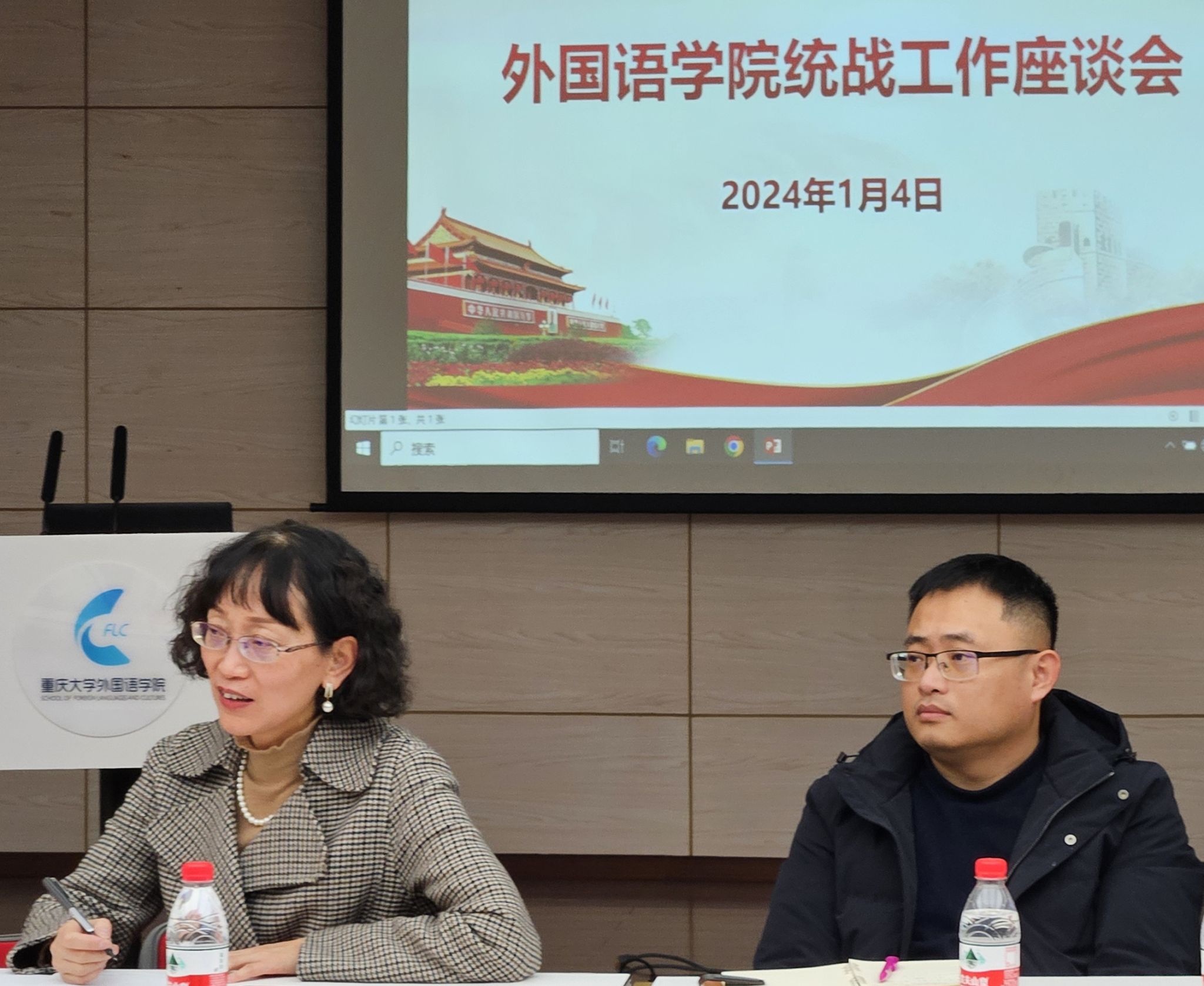 党委在外语学院楼501会议室召开了2023年度统战工作座谈会。会议由学院党委书记欧玲主持,学院领导班子成员,各民主党派、无党派及少数民族教职工代表参加了此次会议。