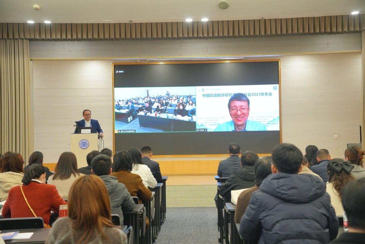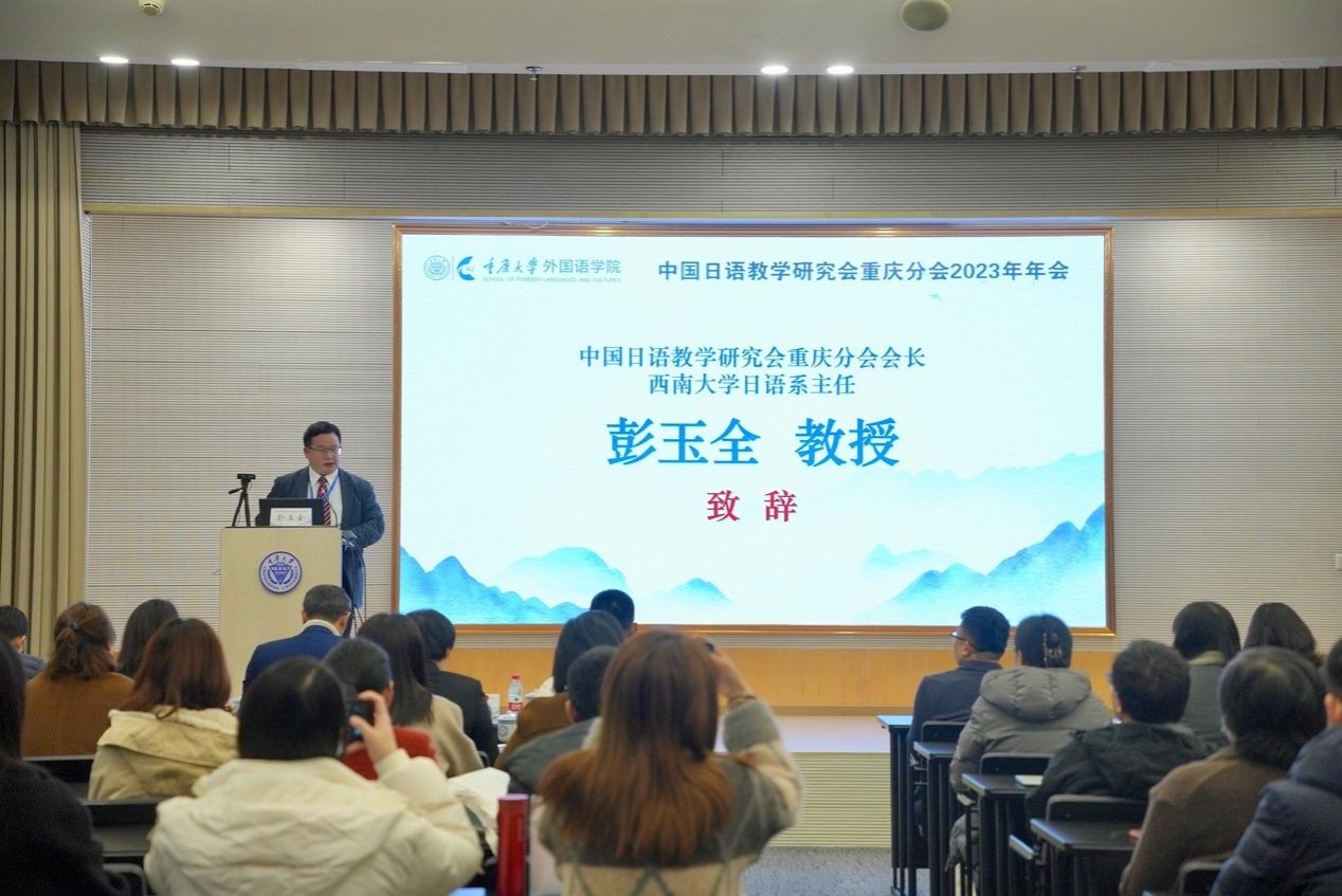 虎溪校区举行。重庆地区高校日语专业负责人、骨干教师,开展日语教学的高中领导及教师代表等五十余人参加了此次年会。本次会议旨在为重庆地区高校日语专业教师与高中日语教师提供教育、研究交流平台,共同探讨“新文科”背景下高校日语专业建设与高中日语教育的协同发展。开幕式由98堂