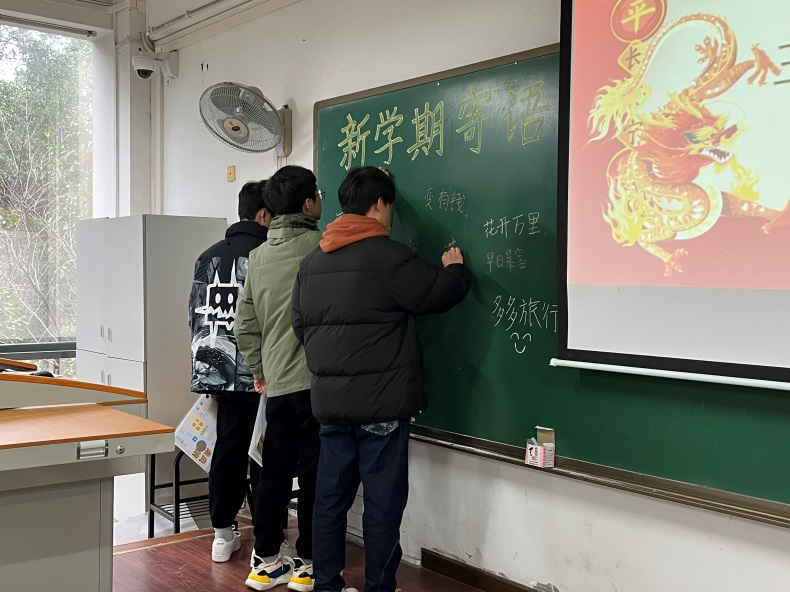 颁奖活动伊始,同学们相约来到活动现场,有序进行签到、领奖及合影留念。与此同时,同学们还在黑板上留下了自己对新学期的寄语,激励自己新学期,新气象;新起点,新希望。