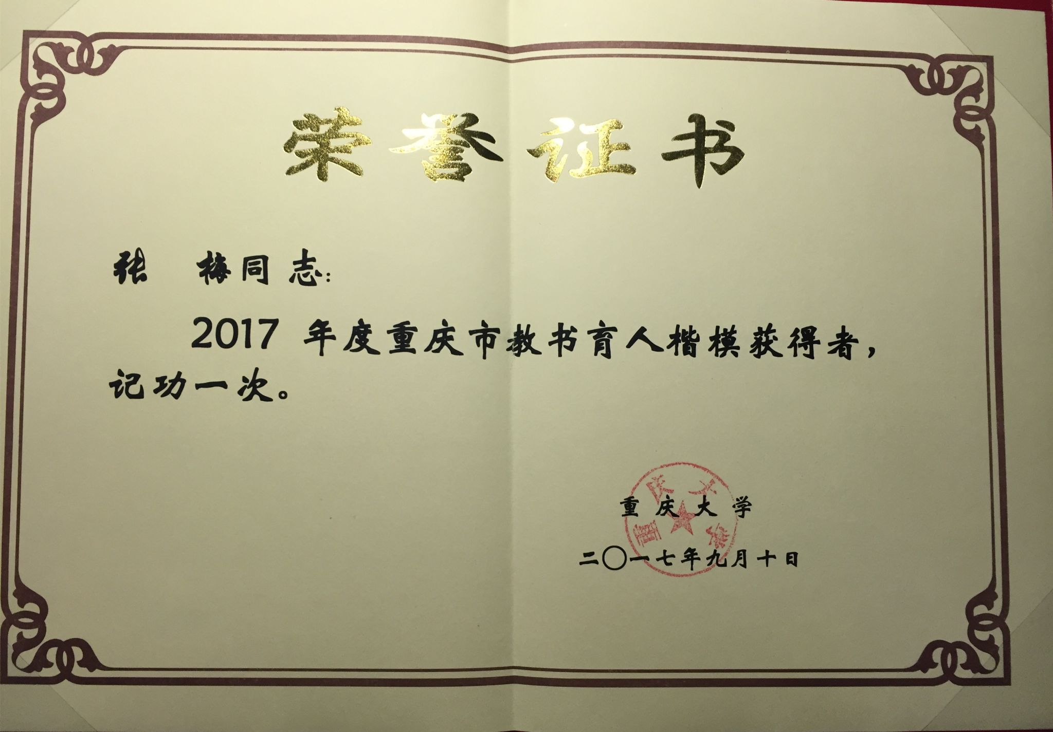 教学工作优秀教师、国家级教学成果二等奖、重庆市教学成果三等奖、98堂