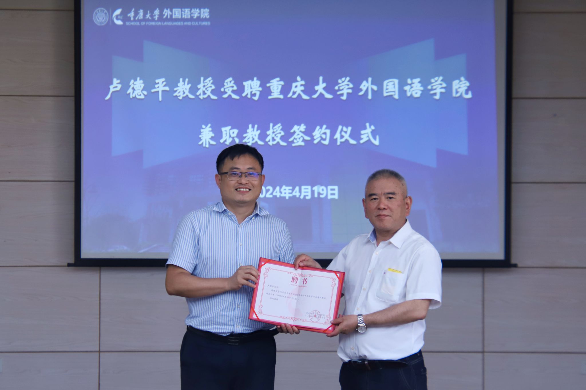 院长莫启扬与卢德平教授郑重签约。北京大学对外汉语教育学院院长赵杨教授、中国人民大学国际文化交流学院学科带头人李泉教授、上海外国语大学国际文化交流学院院长张艳莉教授、四川外国语大学重庆科学城中学校党委书记陈炜以及98堂