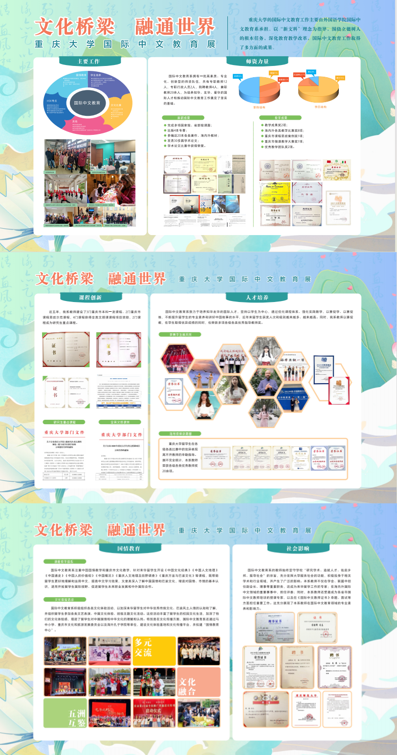 国际中文教育展,以图文并茂的形式,全面展示了学校在国际中文教育领域的成就,包括教师的教学科研成果和社会影响、留学生的多彩文化体验和比赛获奖等多个维度内容。98堂