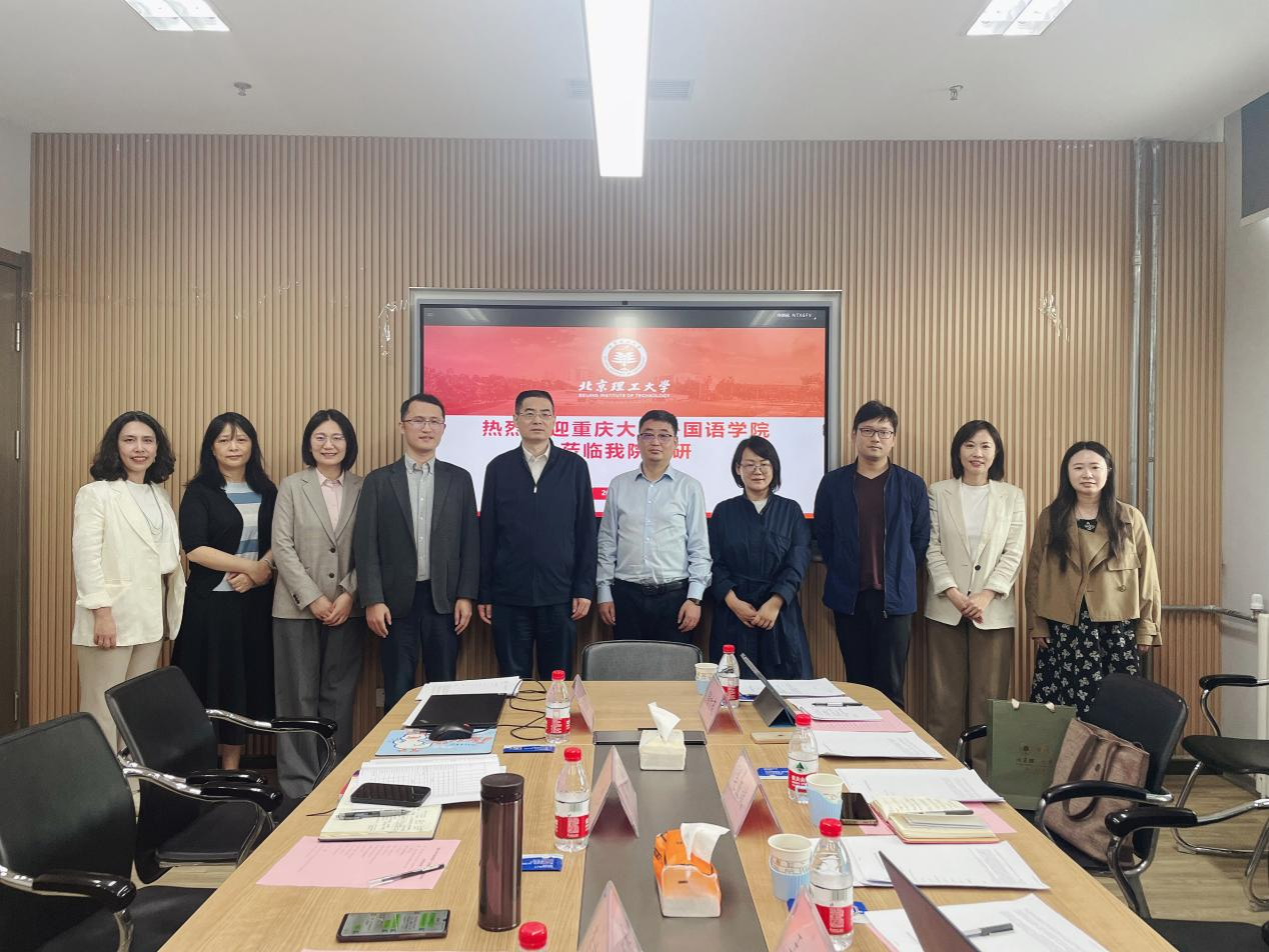 院长李京廉教授、副院长张勇副教授,以及英语系副主任吴霜副教授、日语系主任张元卉副教授、德语系副主任汪亚利副教授热情接待调研团队,并举行了座谈会。李京廉院长认为两校同属卓越大学联盟高校成员,面临的挑战与机遇具有诸多共性,期待能够加强双方的交流。会上,双方就新文科背景下英语、日语和德语本科专业培养方案的制定与改革,以及英日德一流本科专业建设进行了深入探讨。双方就培养方案的专业特色凝练、课程体系创新、教学质量提升、课程思政建设以及学生科研能力培养等方面展开了广泛交流。王江副院长表示,北京理工大学在学科建设与改革方面的积极探索以及与数字人文的深度融合为98堂