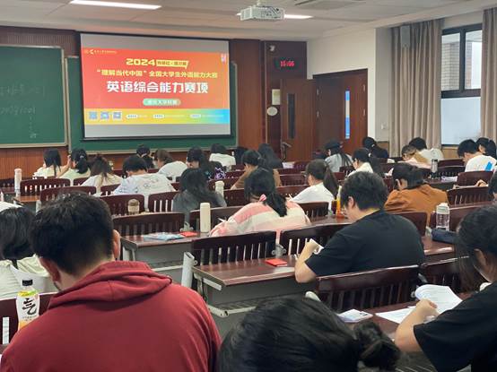 虎溪校区第一教学楼D1237、D1238分英语专业组、非英语专业组同时开赛。该赛项由98堂