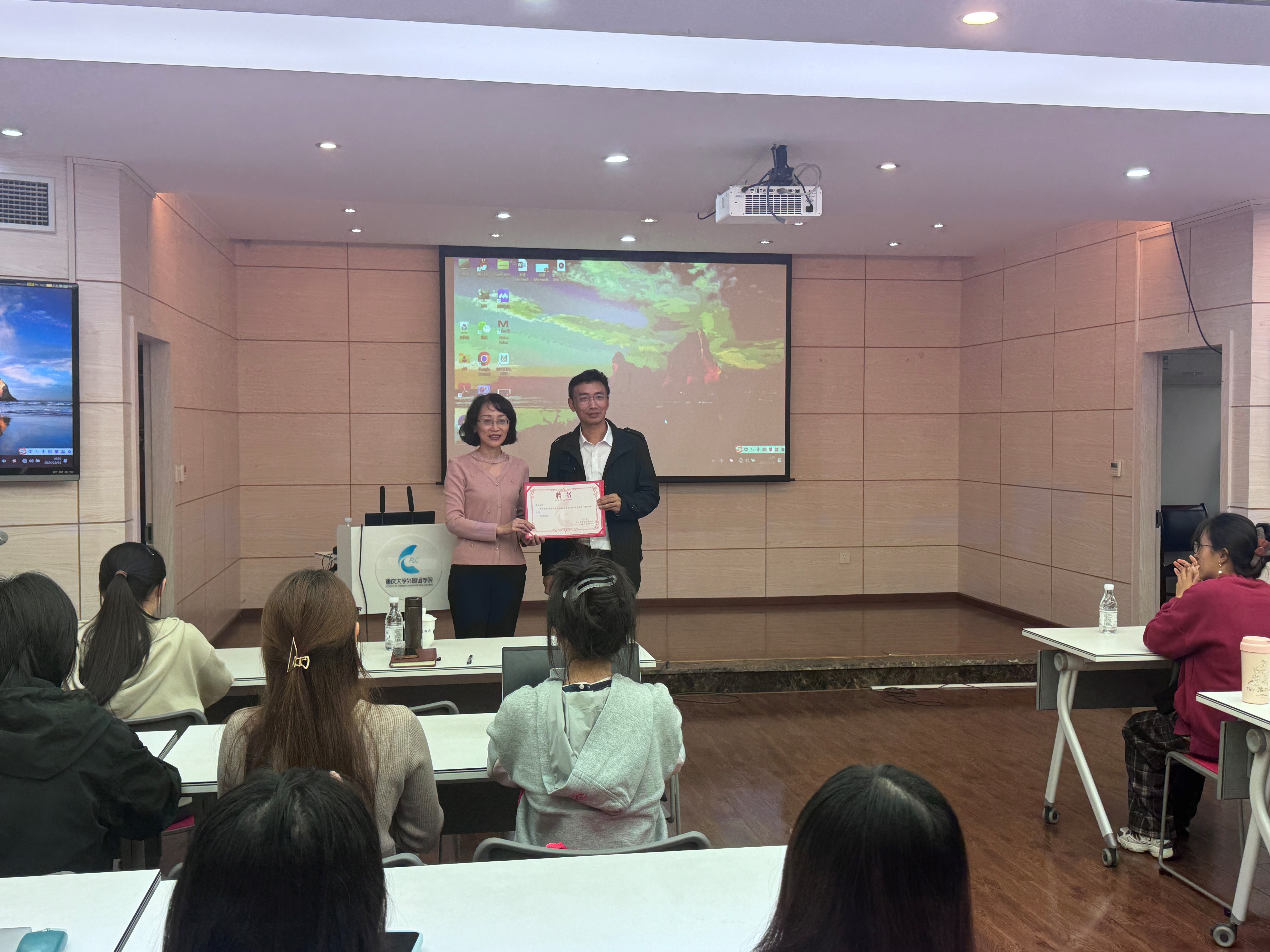 欧玲书记为成林校长颁发聘书