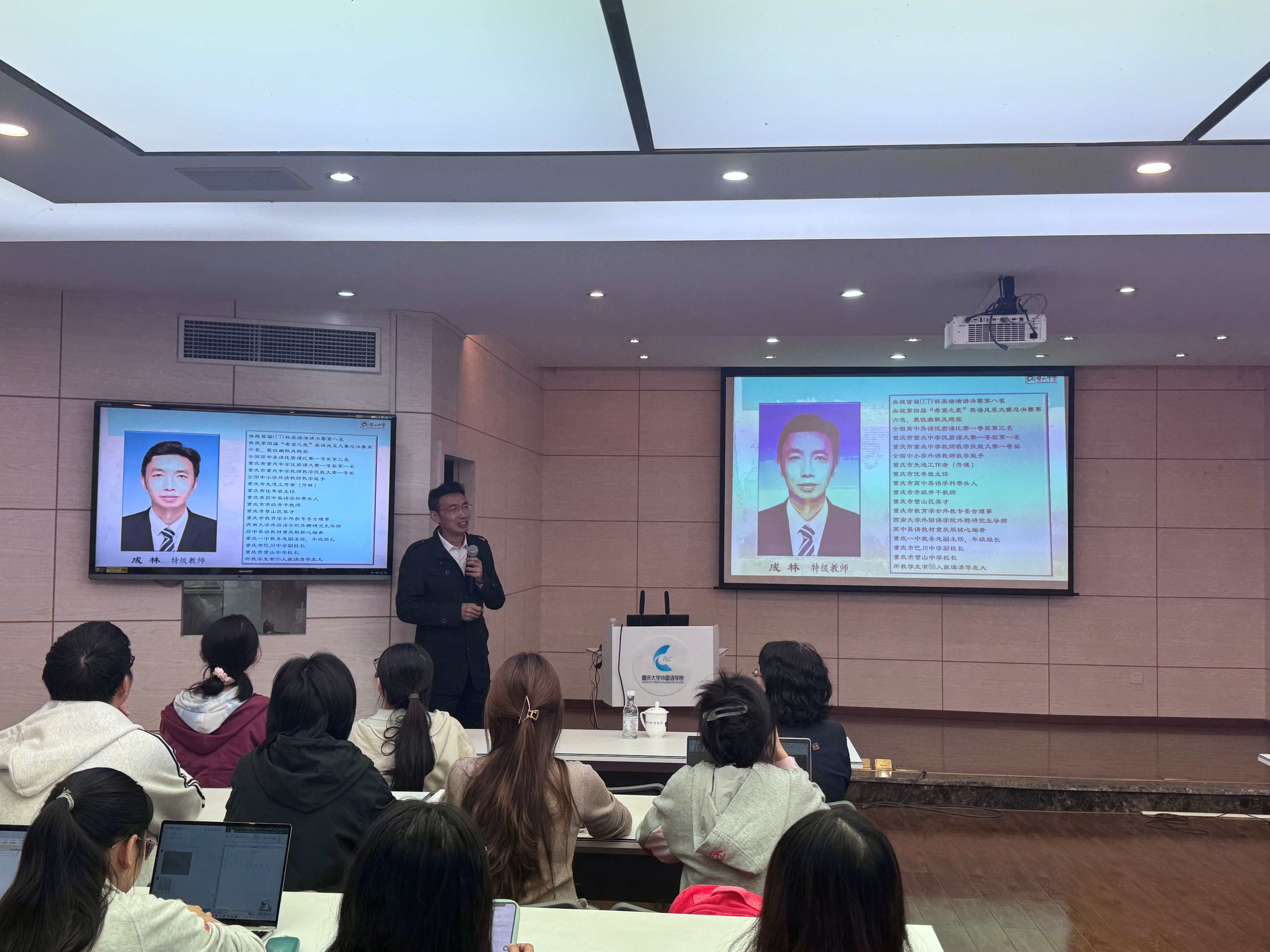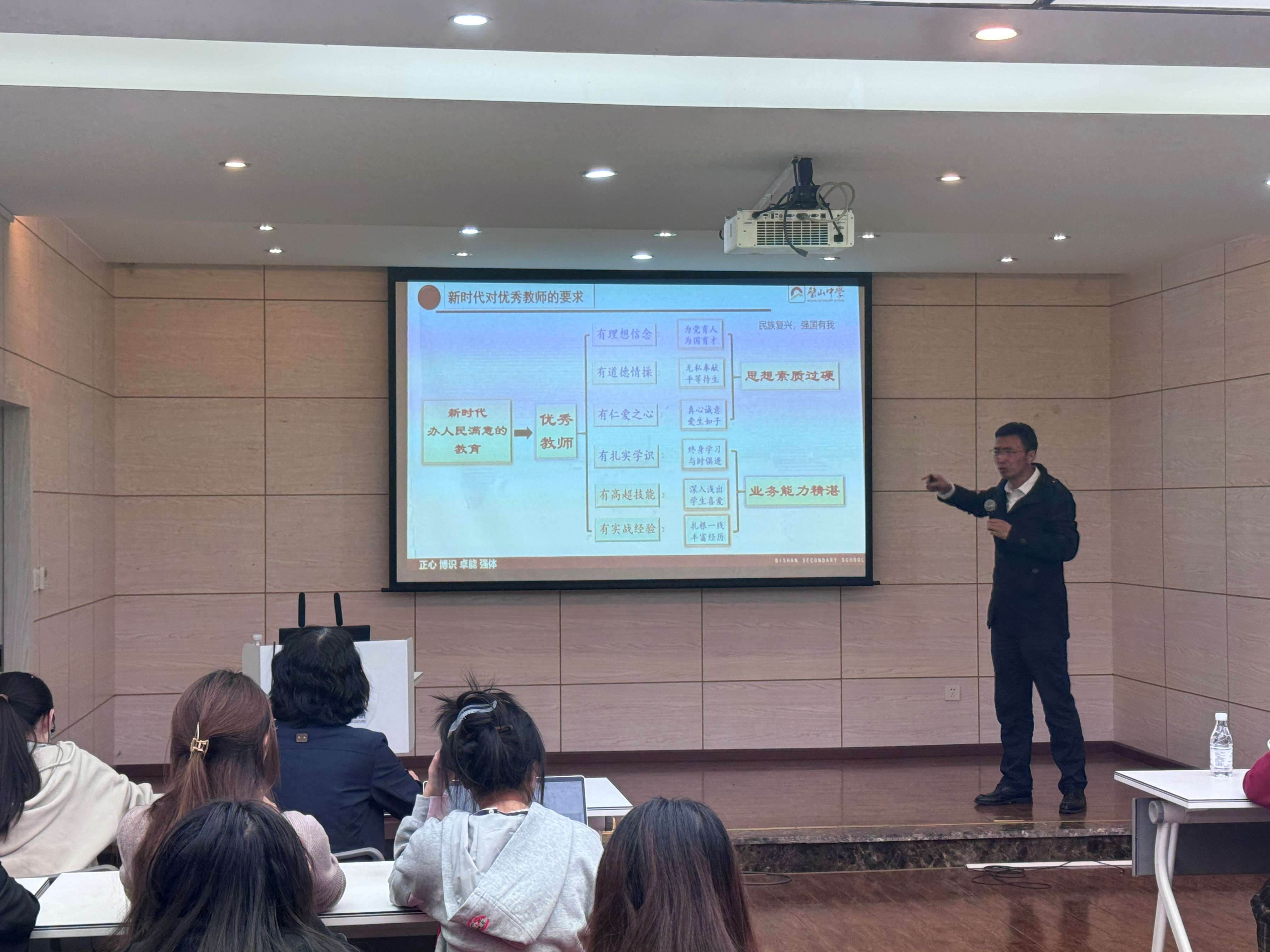 楼501会议室开展了“名师讲坛”系列活动第七讲——教师的职业发展讲座。讲座邀请了璧山中学成林校长主讲,由党委副书记魏世平主持。98堂