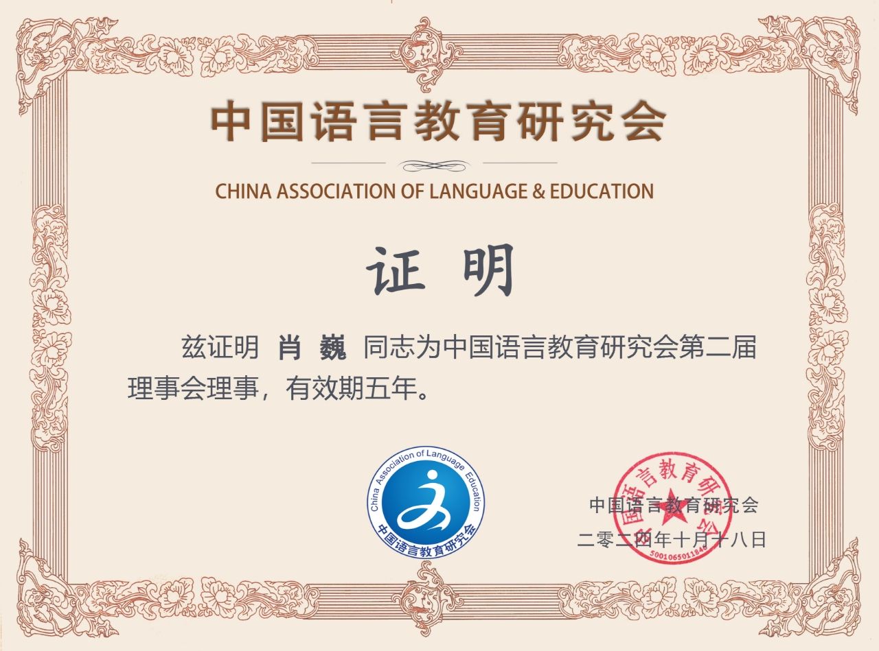 博士生导师、语言认知及语言应用研究基地肖巍教授为学会理事。这是98堂