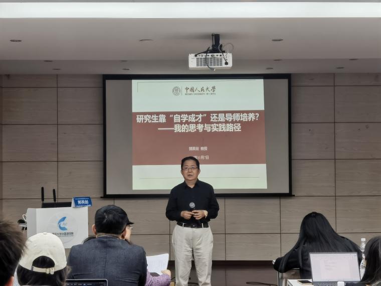 501会议室顺利举行。本场讲座从研究生人才培养角度出发,探讨了硕士研究生与博士研究生培养目标的异同、研究生如何强化个人的学习与创新能力、导师如何培养研究生的学术能力。主讲人郭英剑教授为现任中国人民大学首都发展与战略研究院副院长,中国人民大学“杰出学者”特聘教授,98堂
