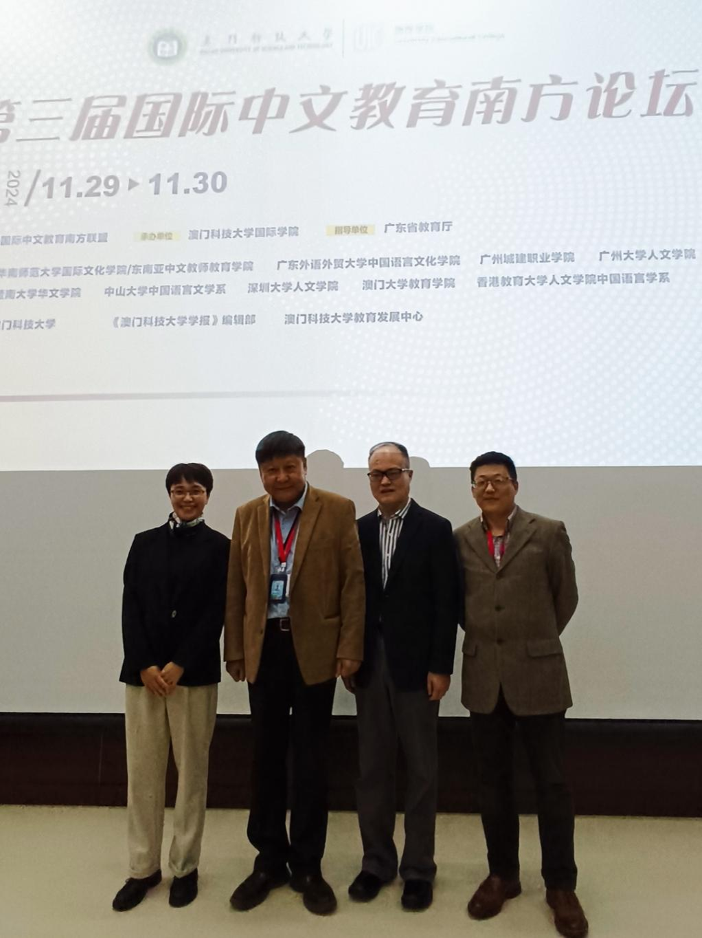 国际中文教育专业代表团在刘扬教授的带领下,参加了在澳门科技大学举办的第三届国际中文教育南方联盟论坛。此次论坛以“新时代国际中文教育学科建设”为主题,旨在推动南方省市国际中文教育体系化建设,促进国际中文教育事业的高质量创新发展。