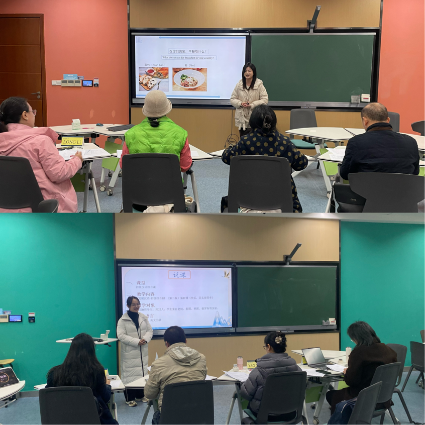 试讲过程中,同学们充分展现出扎实的专业知识和创新思维,运用多媒体等现代教学手段,将抽象知识生动呈现,营造了活跃的课堂氛围。考核结束后,评委老师们给予了高度评价,并针对教学方法、知识点讲解、教学节奏等方面提出了建设性意见,为同学们的教学能力提升指明了方向。此外,双方教师还就对外汉语教学技巧进行了深入交流,探讨教学中可能遇到的问题,进一步丰富了同学们的教学经验。