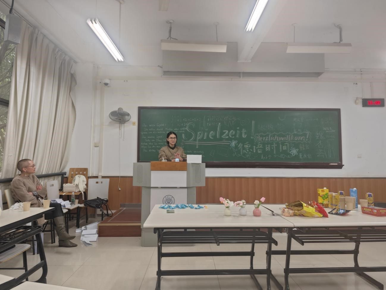 学生社团德语学社在德语系的指导和支持下,于2025年3月30日14时在综合楼DZ215教室开展了主题为“Spielzeit/德语时间”的“德语角”系列活动。本次活动由共青团98堂