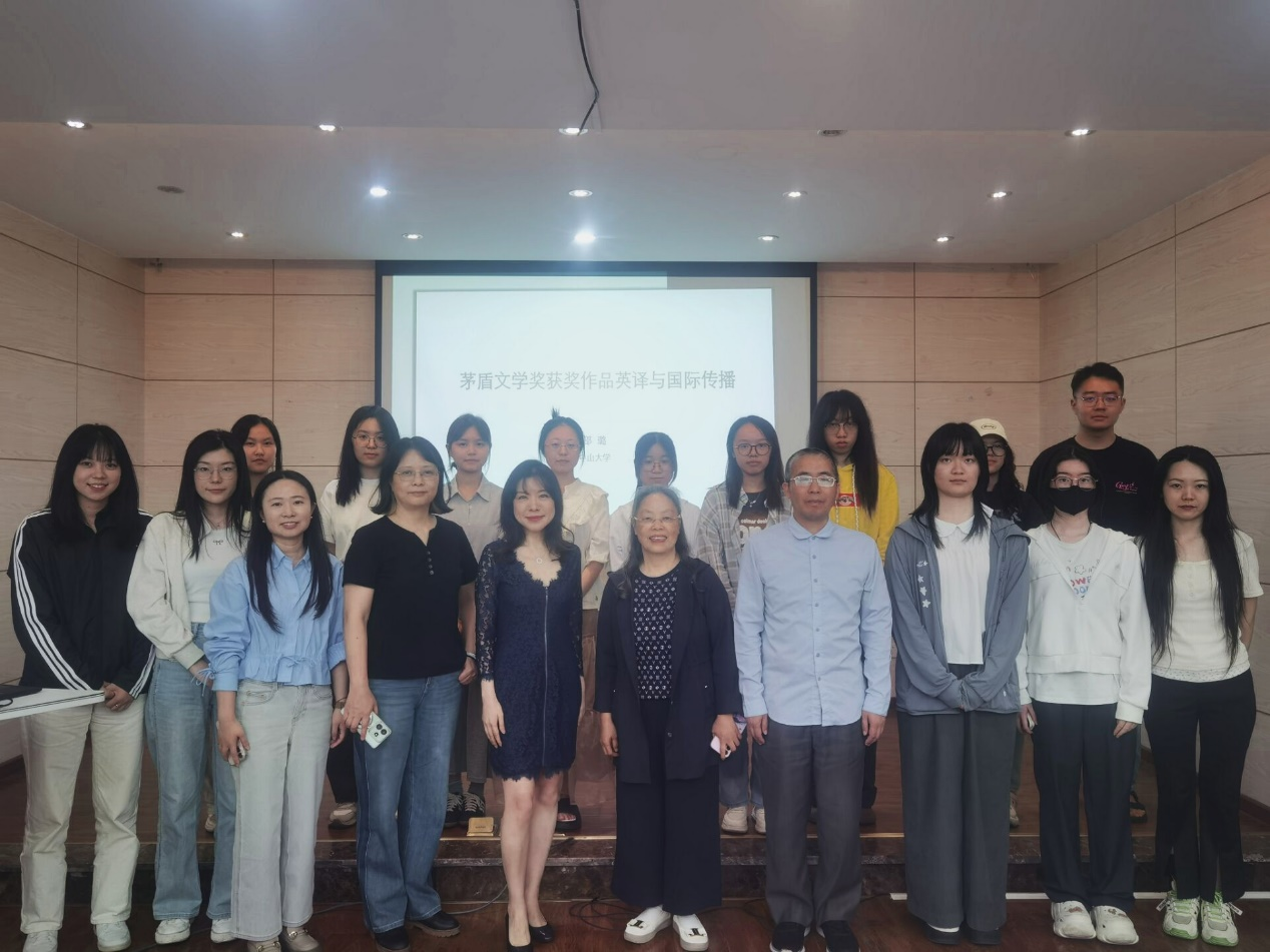 501学术报告厅作了题为“茅盾文学奖获奖作品英译与国际传播”的学术讲座。本次讲座聚焦中国当代文学外译的核心议题,通过量化分析与数字人文技术,系统梳理了茅盾文学奖作品的英译传播全貌,吸引了学院师生及众多文学英译爱好者的参加。本次讲座由98堂