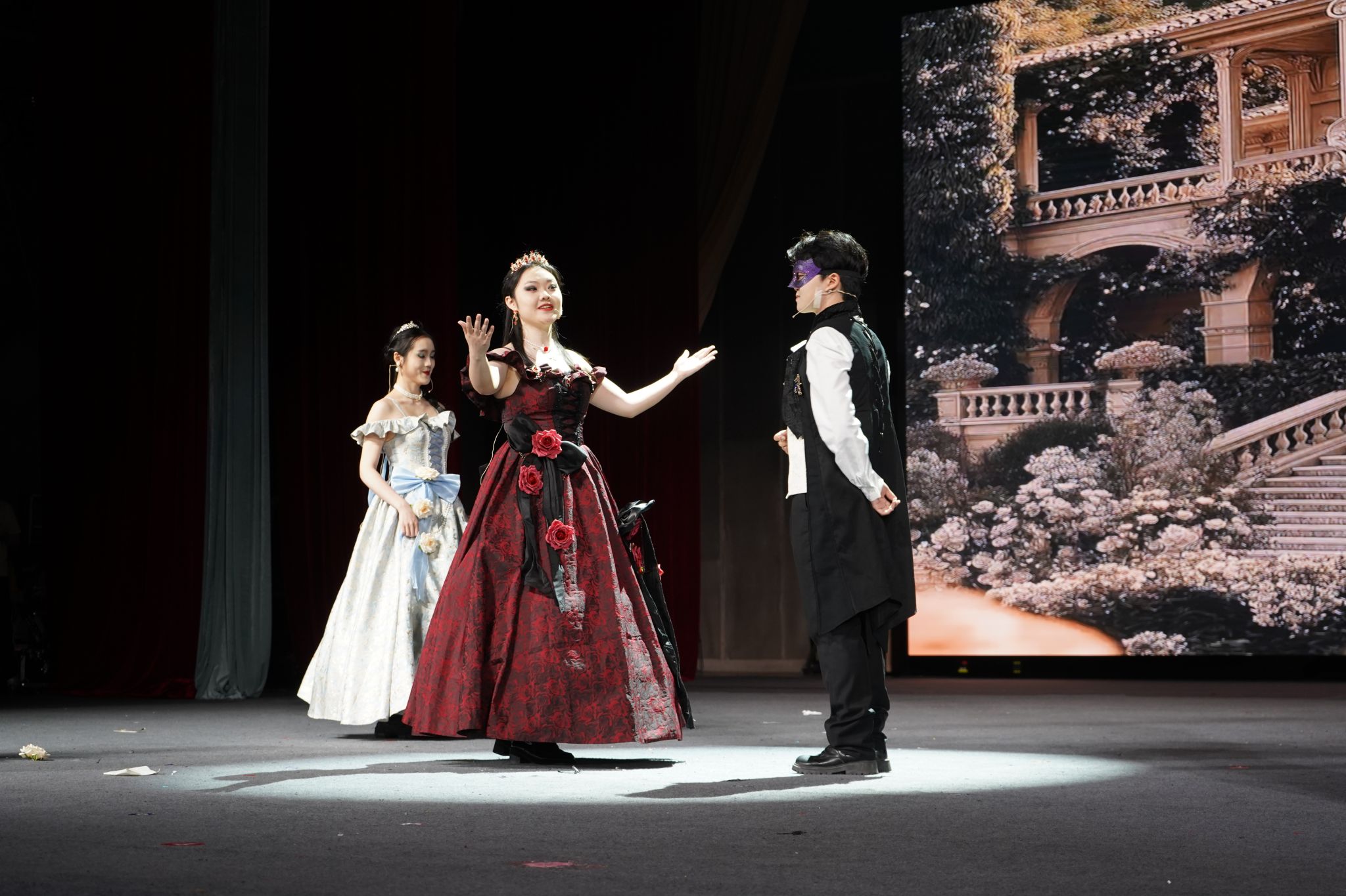 在参赛作品改编中,英语戏剧社通过现代化情节重构与精准台词演绎,对莎士比亚这部十六世纪宫廷喜剧的禁欲誓言进行了创新性诠释。参赛演员们以极具张力的舞台表现,生动展现了人物突破教条束缚、拥抱真实情感的精神觉醒过程,实现了古典文学与现代审美的有机融合。
