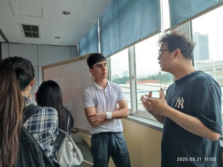 为深化学习效果,公司安排三位业务骨干与学生开展分组交流。各小组围绕整车出口、边境清关、铁路运输等国际货运流程、智能仓储技术应用等感兴趣的领域展开热烈讨论,业务骨干结合实际案例进行专业解读,现场学习氛围浓厚。