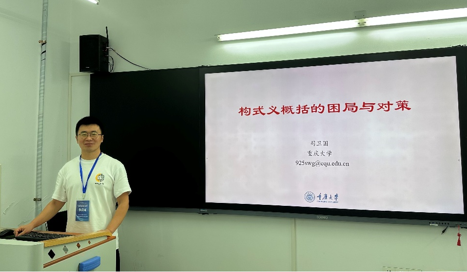 博士研究生杨永霞应邀参会。司卫国副教授受邀担任分论坛四“构式语法的跨学科研究”的点评专家,并作题为“构式义概括的困局与对策”的报告。报告中,他从本体论、认识论和方法论三个维度,系统剖析了当前构式义概括面临的多重困局,并从原则与方法等多个层面提出破局对策,着力探索数据驱动的构式义概括方法,构建“多原则指导、多数据驱动、多方法融合”的构式义概括框架,为提升构式语法的方法论价值提供解决方案。