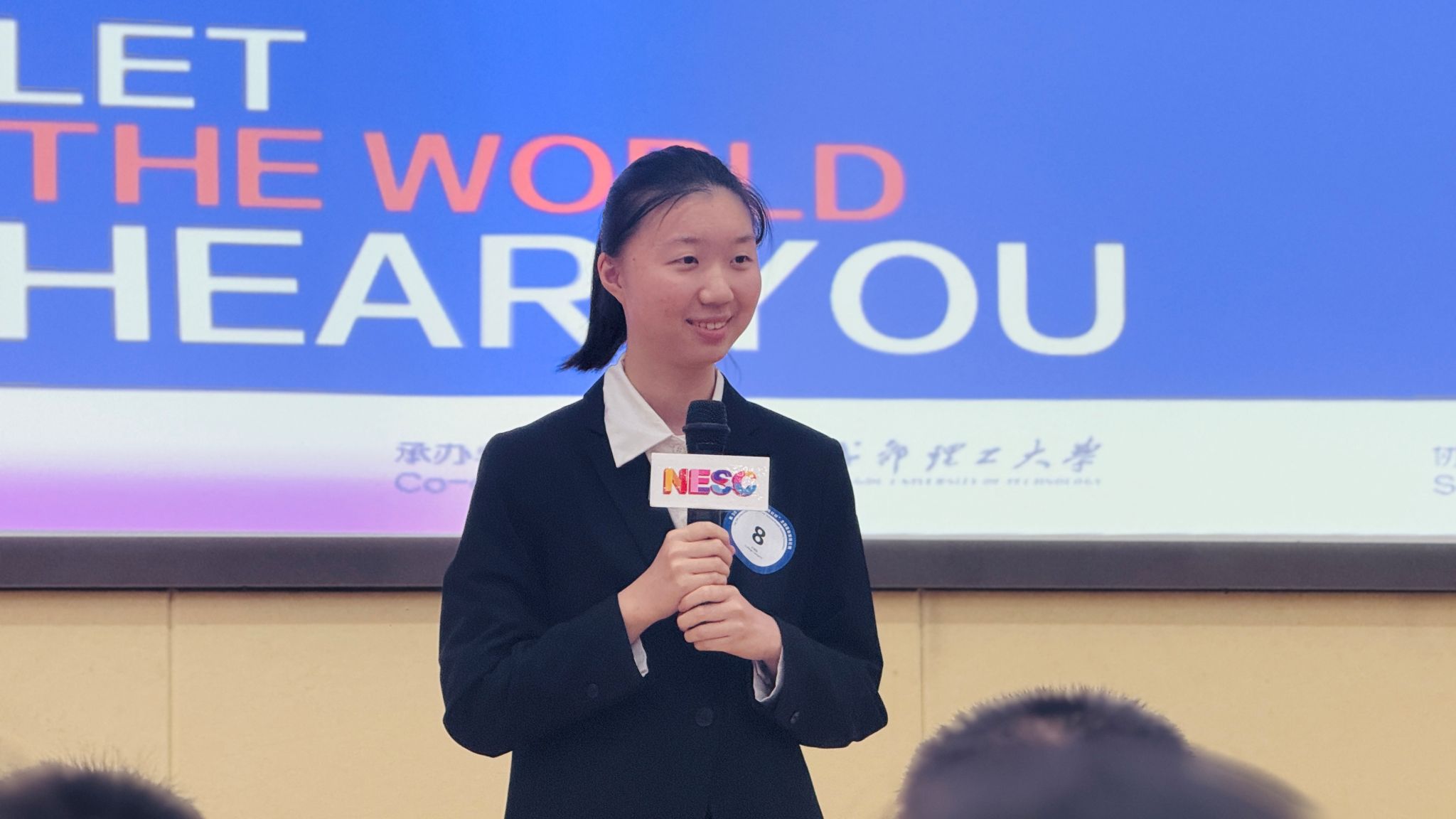 比赛分4分钟已备演讲、2分钟即席演讲、2分钟现场问答等三个环节。我校选手以跨学科视角破题已备演讲主题"Living within and beyond the 21st century"——关迭溪同学从重庆极端天气现象切入,通过《寂静的春天》的启示和日常环保实践,论证"微小行动汇聚巨大改变"的环保理念;周子钰同学则立足导演专业背景,以AI冲击下艺术创作者的困惑与觉醒为主线,提出"将AI化为利剑而非威胁"的独到见解。在即席演讲环节,两位选手灵活应对消费文化转型、青年特质等议题,关迭溪以"爆米花与玉米"的生动类比揭示创造的价值,周子钰则激情诠释二十岁青年应有的勇气与智慧。面对评委提问,她们或结合参赛交通方式畅谈集体环保行动,或深度剖析AI时代人文关怀的不可替代性,展现出融通中西的思辨能力。在三个环节的激烈角逐中,两位选手展现出鲜明的个人特色与扎实的综合素养,最终荣获佳绩。