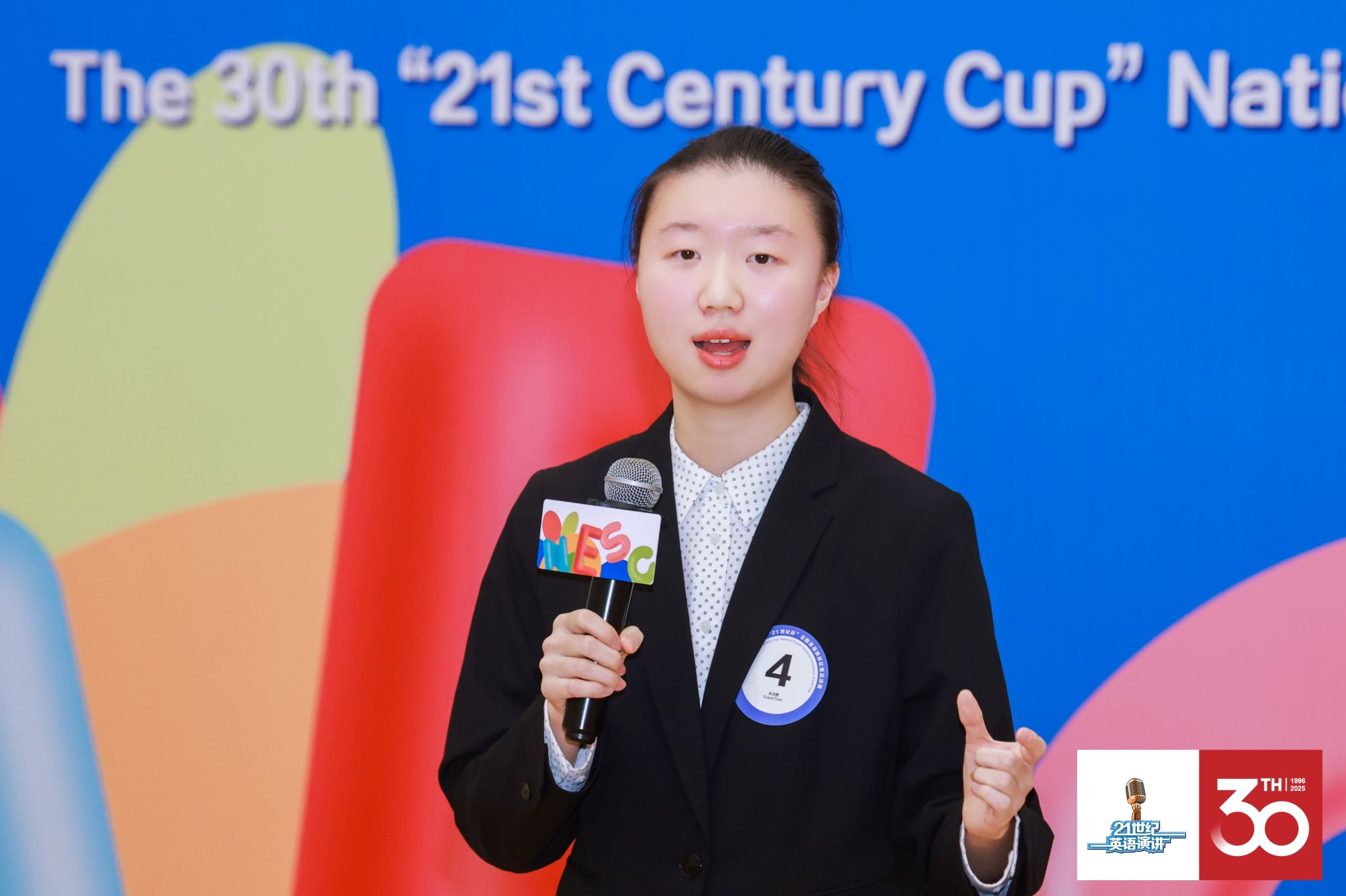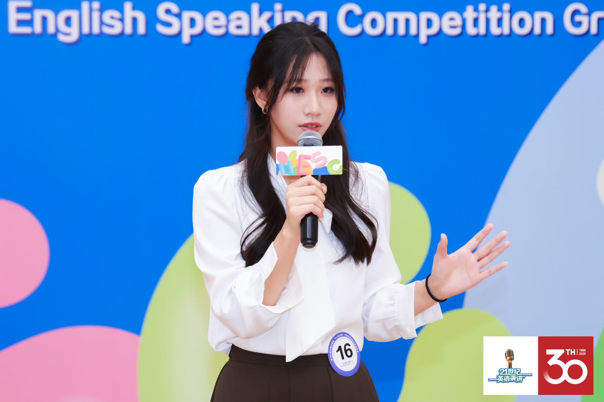 第二轮赛程难度升级,融合已备演讲、即席演讲与现场问答。三位选手围绕“Living within and beyond the 21st century”主题,分别从循环经济、AI与编导融合、城市适老化等视角展开论述,展现出对当代问题的深刻洞察。即席演讲环节中,她们灵活应对方圆文化、英雄主义、优绩主义与好奇心等多元命题,体现出宽广的知识面与敏捷的逻辑思维。最终,关迭溪凭借稳定出色的表现以分赛场前三名的优异成绩晋级总决赛。