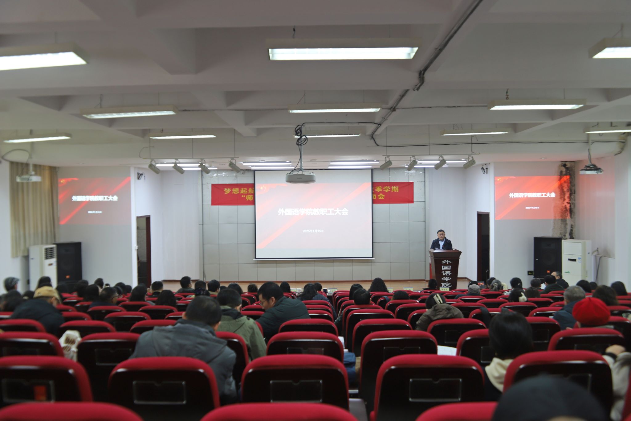 在学院楼二楼多功能厅召开全院教职工大会暨2025年度工作总结会。学院党政领导班子及全体教职工出席了会议,会议由学院党委副书记魏世平主持。