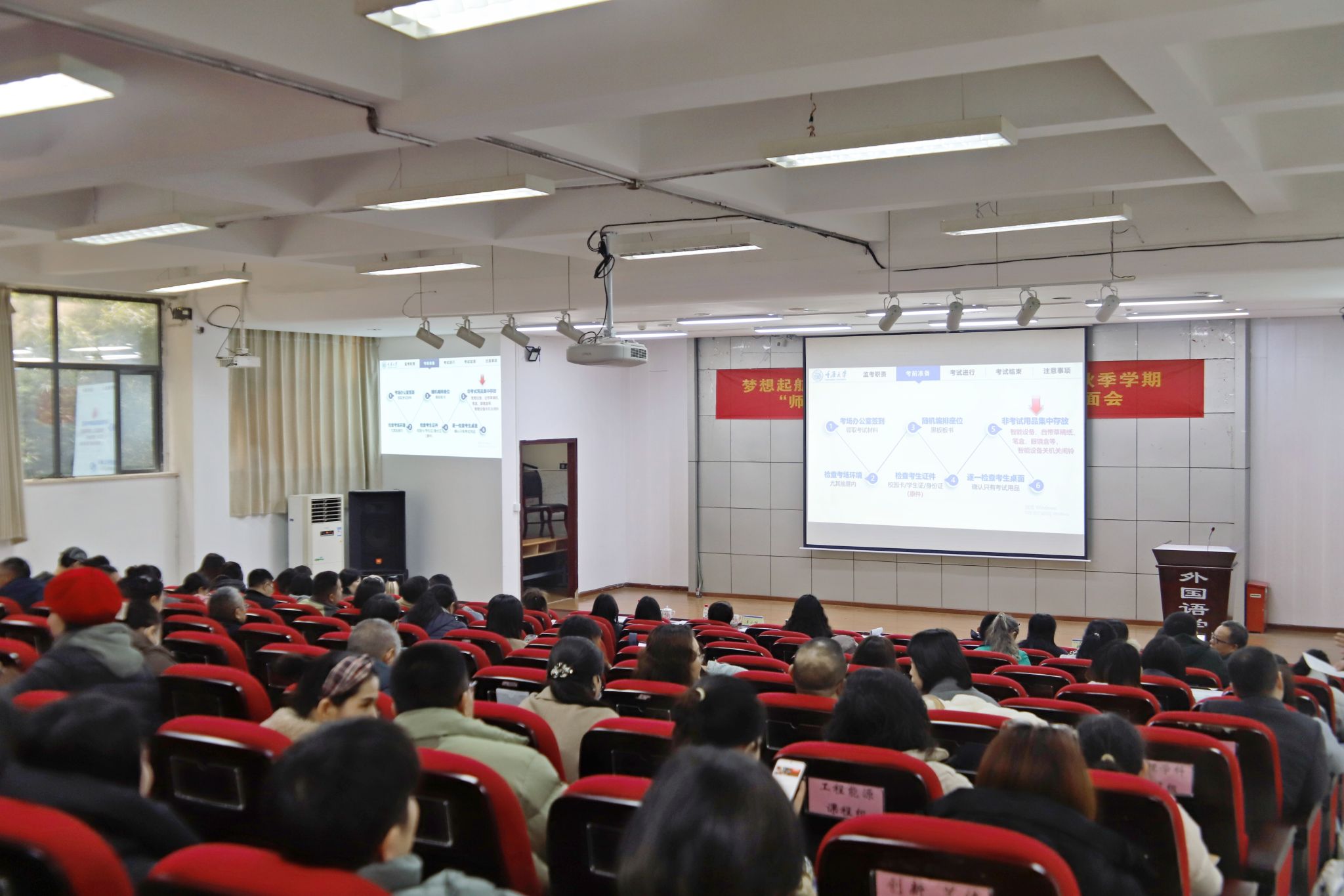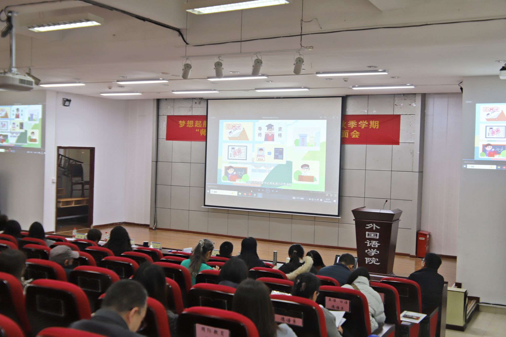 会议伊始,学院全体教职工集中学习了师德师风警示案例视频,参加了考务工作培训,进一步增强了师德师风底线意识和考务工作规矩意识。