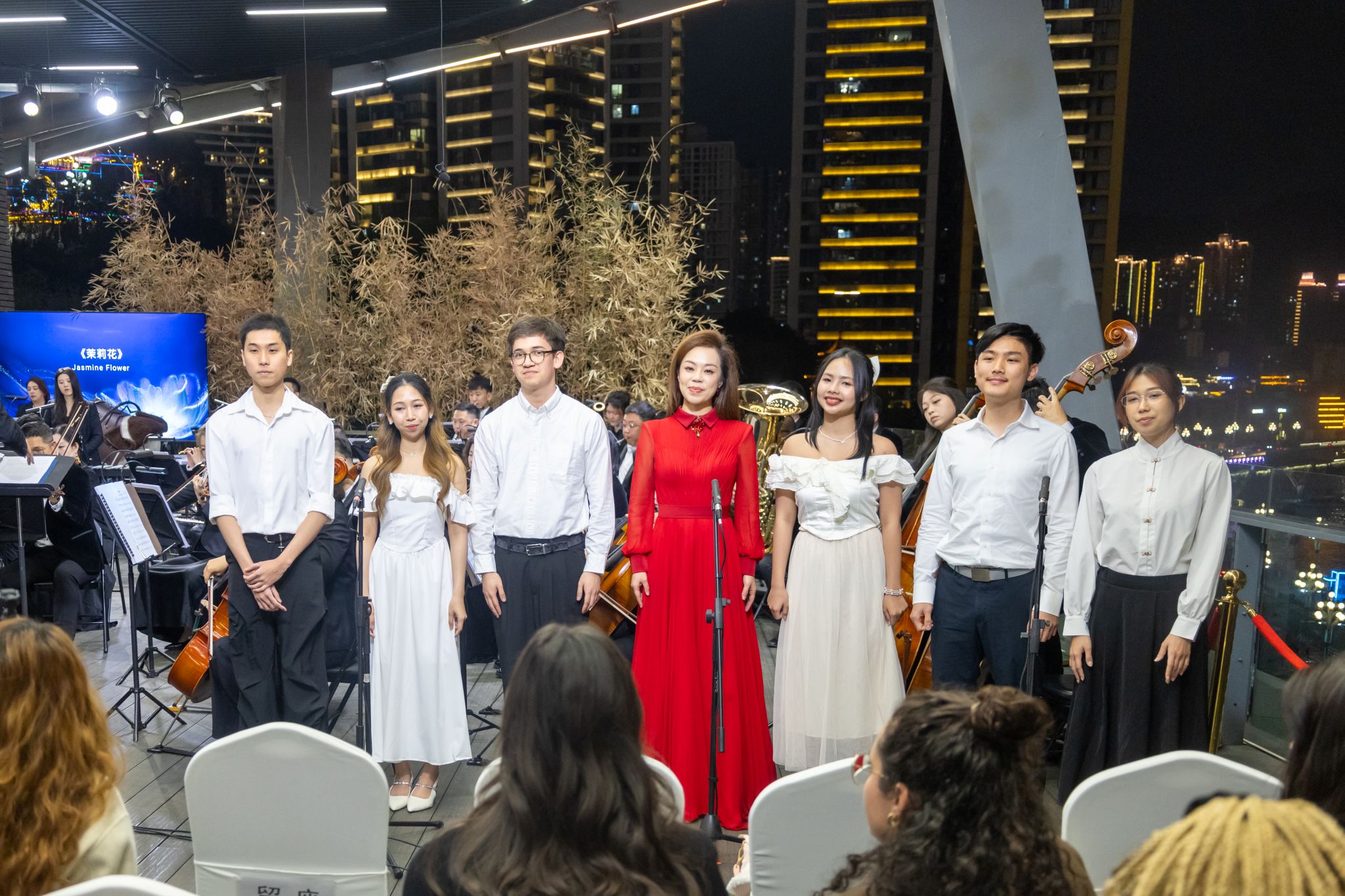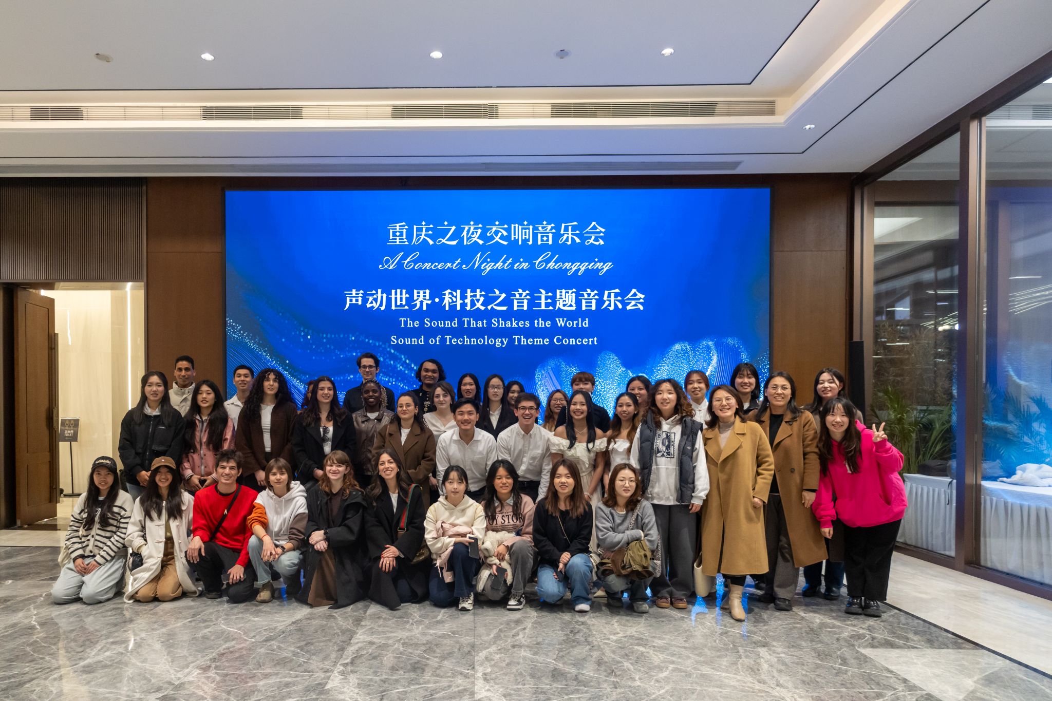于3月21日晚组织师生赴重庆国际会客厅参加“声动世界·科技之音”主题交响音乐会。活动现场,留学生与歌唱家同台献唱《茉莉花》,在沉浸式文化体验中提升跨文化沟通能力,切实将调研成果转化为育人实效。