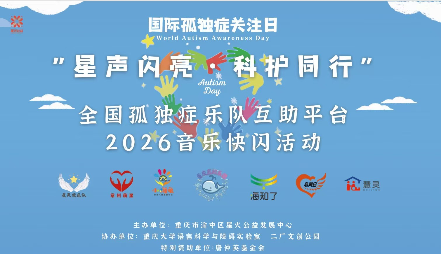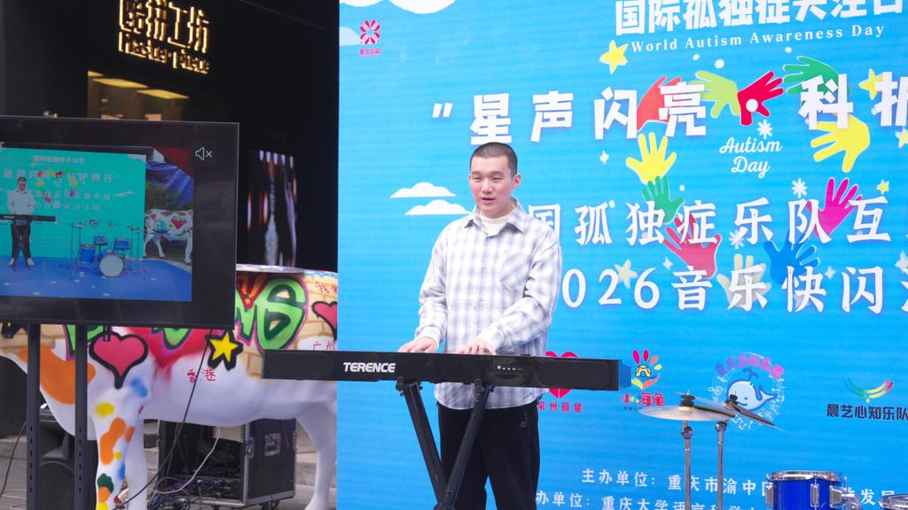 语言科学与障碍实验室)助力以音乐为桥、以公益为媒的“星声闪亮” “鲸跃共生”全国孤独症乐队互助平台快闪公益活动,活动在重庆市渝中区举行,联动重庆、四川、广西、贵州、河南、江苏等地孤独症乐队共同参与,用旋律点亮星光,用关爱温暖童心。