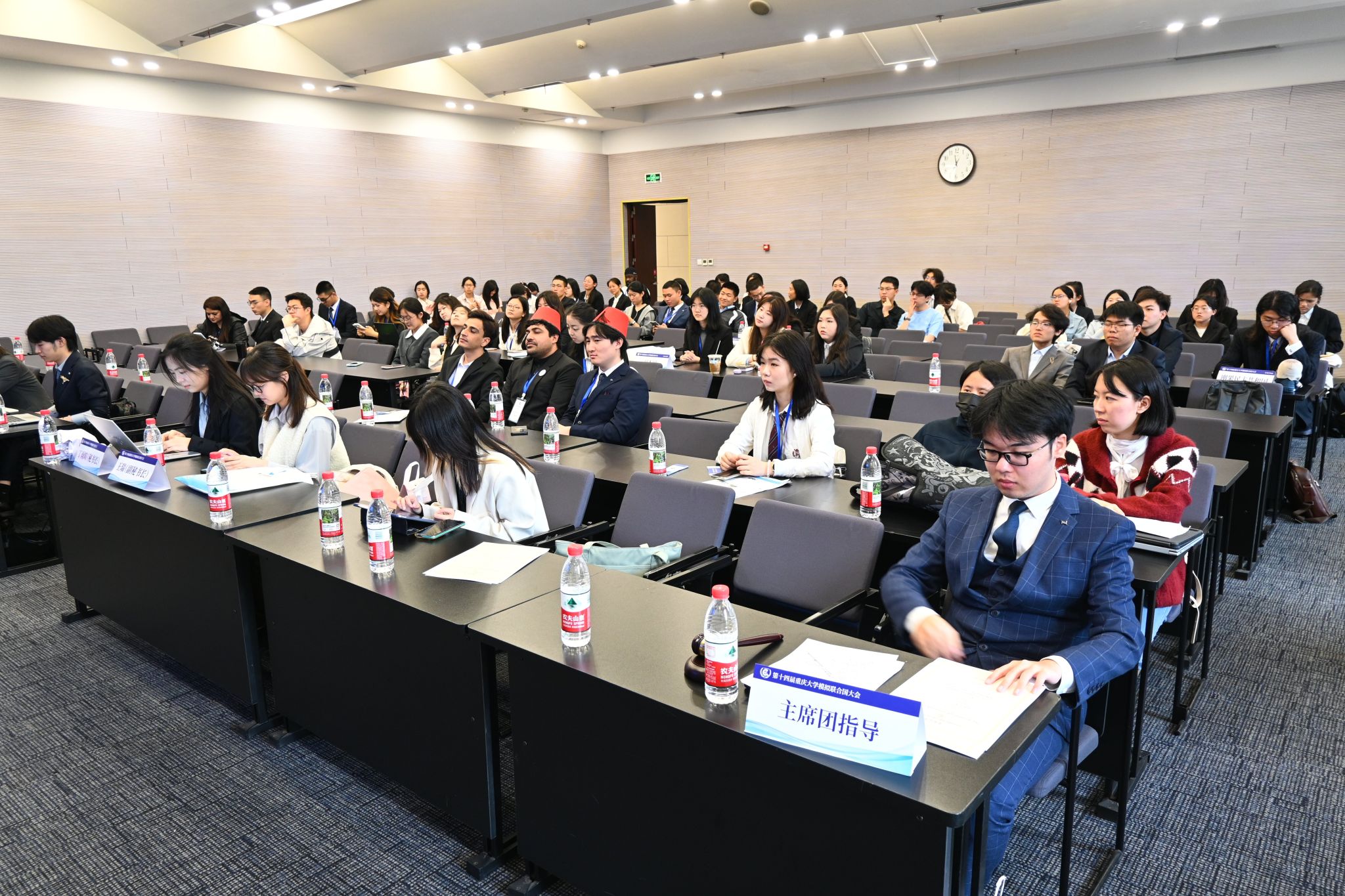 学生模拟联合国协会协办。全校20个学院以及市内联勤保障部队工程大学、中国人民解放军陆军军医大学、四川外国语大学、西南政法大学等9所高校的200余名青年学子齐聚一堂,参与模拟联合国议题研讨。
