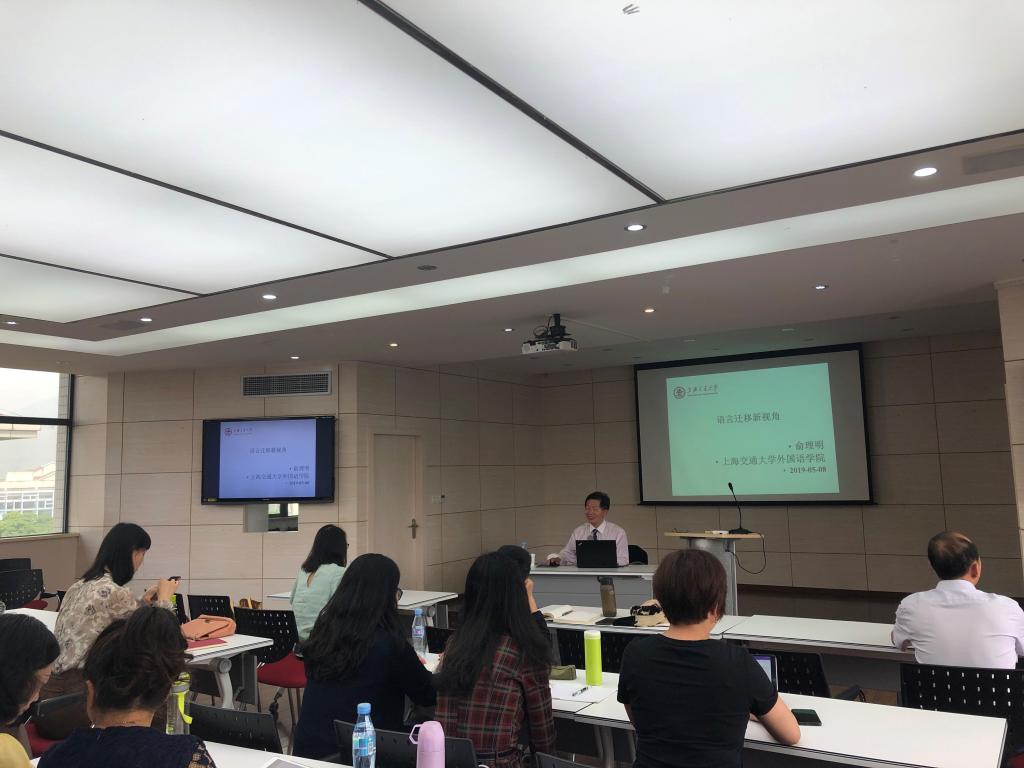 语言认知及语言应用研究基地承办。第一场为知用讲坛第10期 “教育语言学和我国外语教学的学科建设”,由盛荔博士主持;第二场为知用沙龙第9期“语言迁移新视角”,由常鹏云博士主持。院内外40余名师生参加了此次讲学活动。