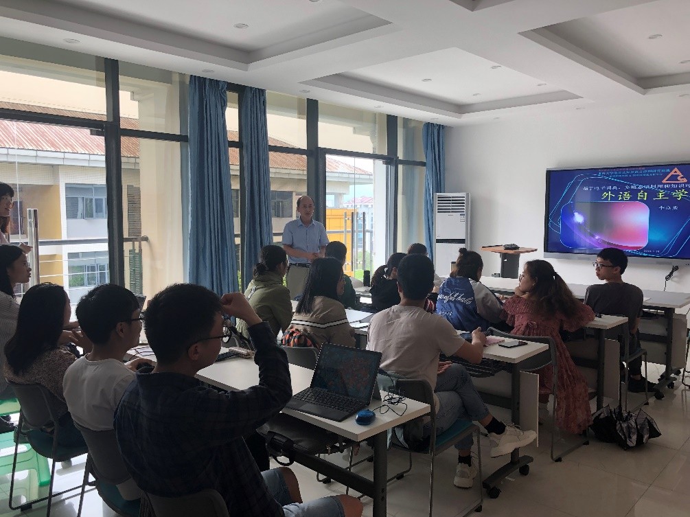 在讲座过程中,李博士与现场听众就“人工智能时代重新反思教育的本质、自主学习、电子词典的使用”等相关问题展开热烈讨论。李博士阐释充分、事例生动、幽默风趣、深入浅出、寓教于理,赢得了师生们的广泛认同和高度肯定。