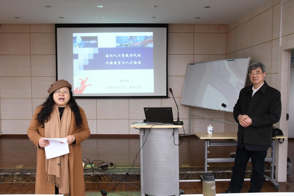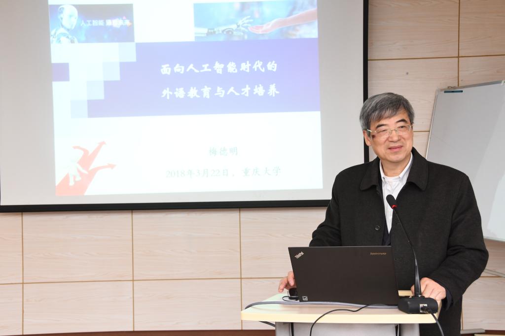 随着科技的发展,人工智能技术也被越来越多地运用到我们的生活中,那么,这一技术对于培养人才的教育领域又会产生怎样的影响呢?为此,3月22日,外语学院特意邀请到上海外国语大学教授、博士生导师梅德明老师为全院师生作报告,听听他对这个问题的看法。讲座由98堂