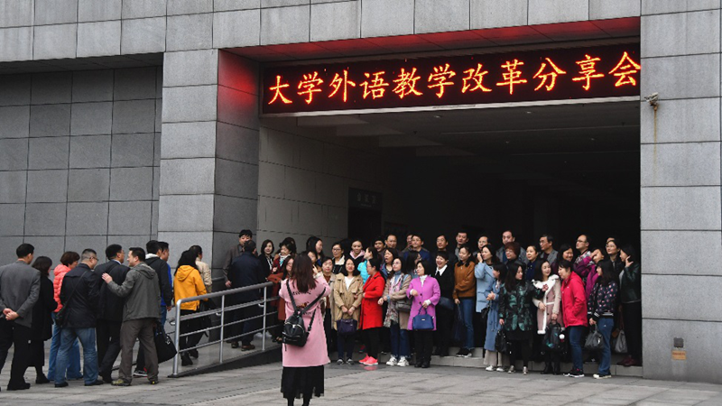 大学外语教学改革的经验,并建议到场的同仁们互通有无,在改革的背景下共同迎接挑战、携手前进。