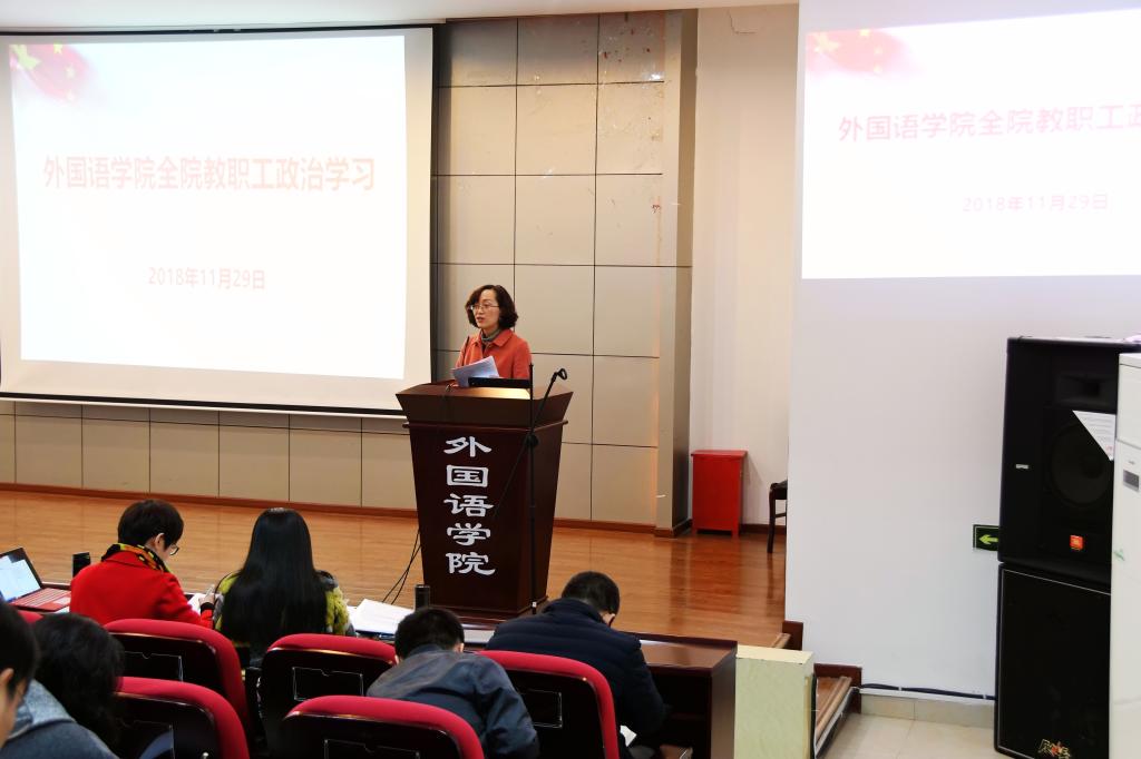 欧玲书记首先传达了习近平总书记在全国教育大会上的重要讲话精神,并结合学校教育改革发展实际,强调全院教职工要认真学习领会讲话精神,认真落实立德树人根本任务,为推进学校“双一流”建设做出自己的贡献。欧玲书记从深刻领会习近平总书记重要讲话和全国教育大会精神对“双一流”建设的重大指导意义、准确把握新阶段“双一流”建设新要求、加快办好“双一流”建设的重点任务三个方面解读了陈宝生同志在“双一流”建设现场推进会上的讲话精神,重点解读了加快建设、特色建设的六项内容:培养高素质人才,服务重大需求,提升科研创新水平,深化国际合作交流,加强教师队伍建设,坚持特色发展,分析了98堂