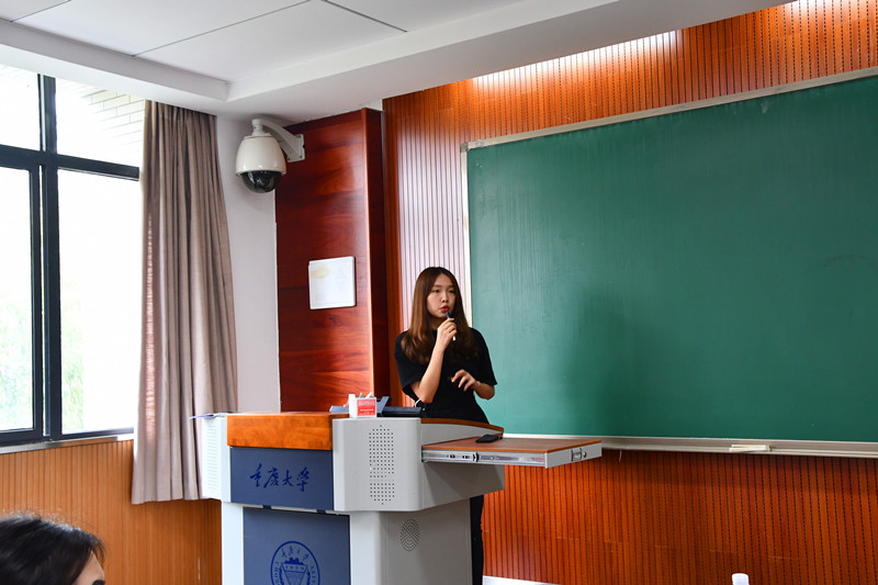 的第四位助教张琦菲幽默开场,并由此点明她担任助教工作的重点:提高同学口语表达能力,激发英语学习兴趣。除了分享开展English corner活动的经验、利用online和offline的O2O模式进行助教工作之外,她坦言做个有心人十分重要。人与人的熟悉和信任是相互的,以负责的态度帮助每位同学,同学们也会以更优异的表现作为回馈。