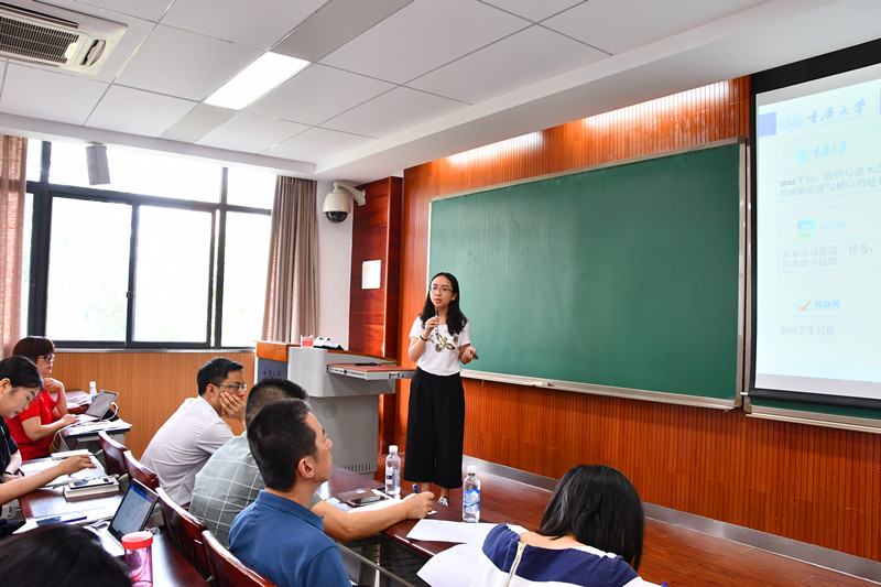 分享会上张小洪副处长首先对外语学院的助教工作给予了充分的肯定,并表示学校将继续支持助教工作,促进教学改革。他还表示助教工作是个难得的机会,也是一个重要的平台,通过这个平台,助教可以促进学生与老师之间的交流,他还鼓励优秀助教到更大的舞台上去分享自己的助教工作经验。李小辉副院长向各位专家介绍了98堂