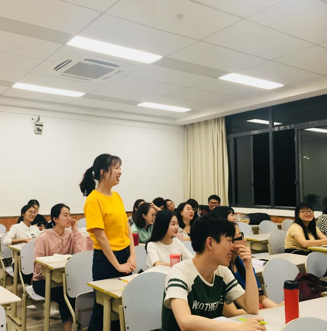 同学们还针对实际教学中碰到的问题向丁老师提问,包括写作课教学、阅读课教学和高级综合课教学中的不同问题,丁老师一一作答,并针对不同的课型,提出了不同的建议,指导同学们如何把课上得更好,使学生更愿意接受。