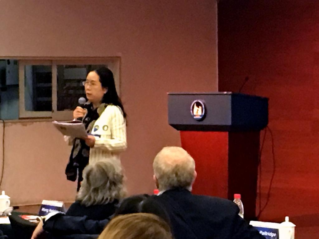 随后,由蔡基刚、史杰、黄萍教授主持,Christine Feak、孙有中、Ken Hyland、Haijime Terauchi等五人分别就ESP的热点问题进行了主旨发言,他们的发言涉及到如ESP专家与各学科专家的合作面临的问题及解决方案、ESP中跨文化能力的培养与提高、香港大学“学科中的英语”课程设计、日本商务英语教学中存在的问题等方面。专家学者的发言引领者ESP发展的前沿,激起参会人员深层次的思考,大家踊跃提问,与发言人探讨并交流意见看法。