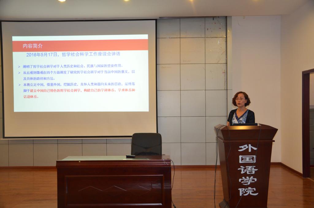 随后,欧玲书记从哲学社会科学研究的意义、核心任务、理论武器、方法、理论保障等方面全面解读了习近平总书记讲话的精神,重点明确建立中国自己特色的哲学社会科学,构建自己的学科体系、学术体系和话语体系。