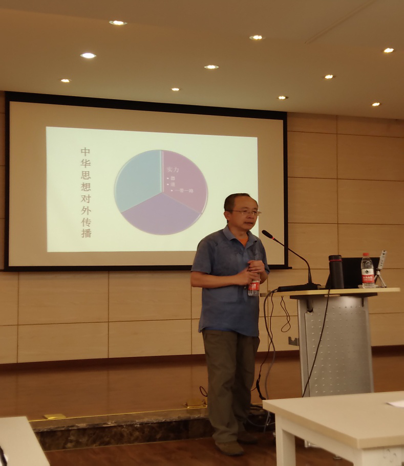 钟勇博士在一开场就以一幅太极模型吸引同学们的兴趣。接着,讲了中华思想在对外传播过程中需要实力,其次要把实力做大,最后还需要翻译,还举了“一带一路”就是实力的体现。