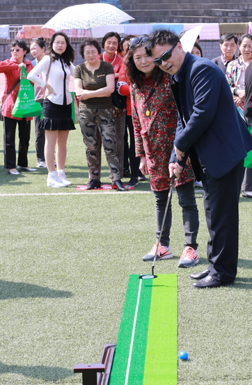 5名退休老师在院工会主席的带领下参加了“迷你高尔夫”运动项目,获得单项第2名的好成绩。50余名离退休老师到达现场加油助威。