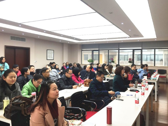 随后,张教授重点讲解了信息技术与教育教学深度融合的内涵和发展路径。从教师、学生、教学内容、教学媒体四大要素的变化出发,解析了信息时代下课堂教学的结构性变革,并且以布鲁姆教学目标分类学为依据,指出现代教育发展追求高级认知目标的特点。教师需加快角色转变,将信息技术从一般性的辅助工具发展为支持创新能力培养的革命性工具。与此同时,张教授还通过分析基于MOOC的翻转课堂,雨课堂及蓝魔云班课等案例,引导教师在好的教学模式中利用信息技术,为学生创造有效的情景化学习环境。最后,张教授结合我校第三批翻转课堂的数据分析,从自主学习、合作学习、师生关系三个维度对我校翻转课堂的实践现状进行了总结,肯定了98堂